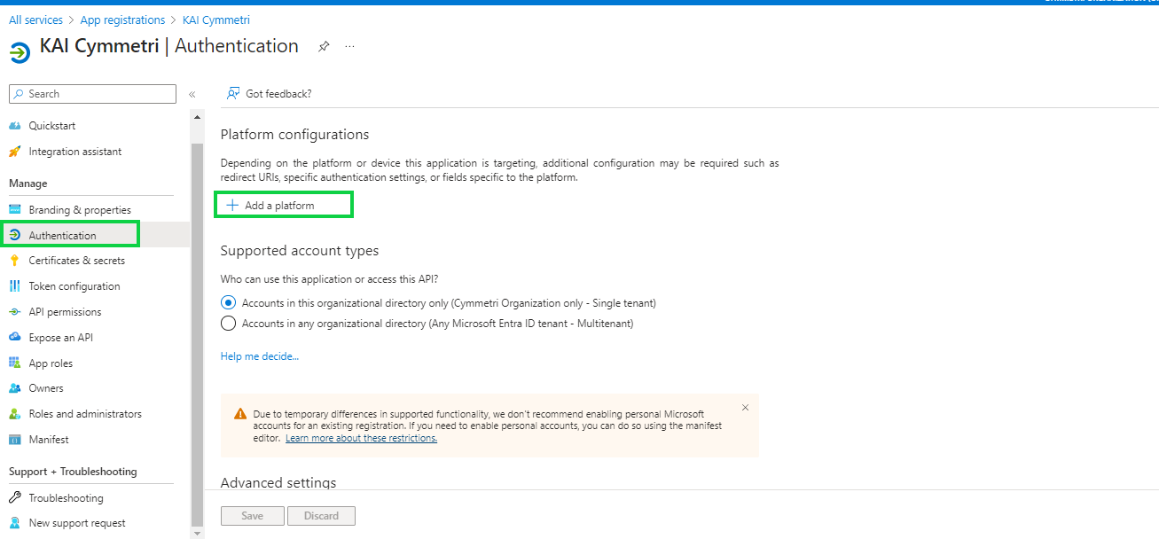Once registered next click on **Authentication** menu and **+Add a platform**.