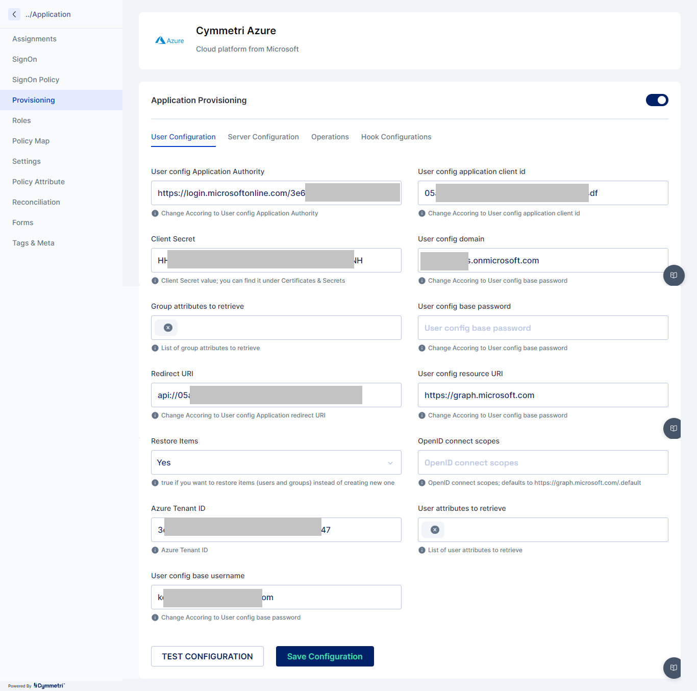Azure provisioning in Cymmetri involves setting up configurations to automate the creation and management of user accounts in Microsoft Entra ID. This allows for seamless user onboarding and offboarding processes.