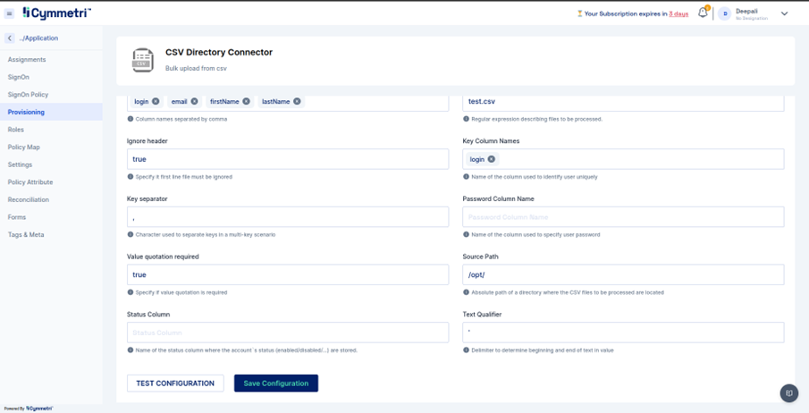 To configure the CSV Directory with Cymmetri we need to configure the CSV Directory application. Please follow the steps provided below.