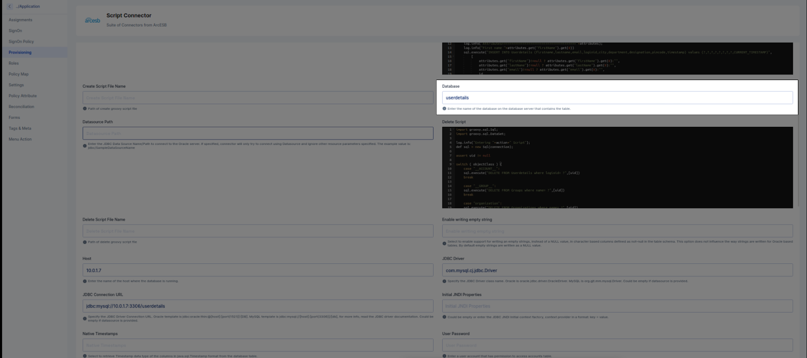 After Getting application from Cymmetri Master activate provisioning of selected application i.e ScriptOn application (Database).After successfully activation of provisioning, setup server configuration.