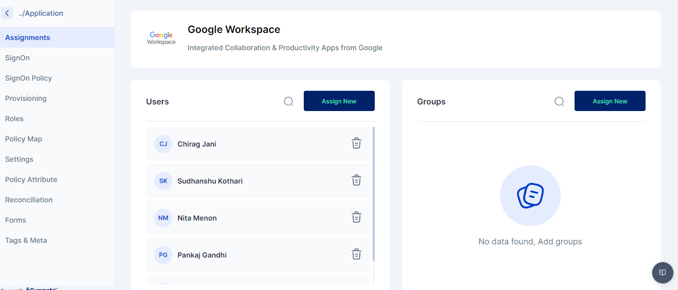 Once the test is successful next go to the **Assigments** section and assign the application to a user as shown below: