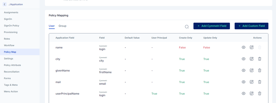 To add a mapping, click on the add Cymmetri field and add the field details.