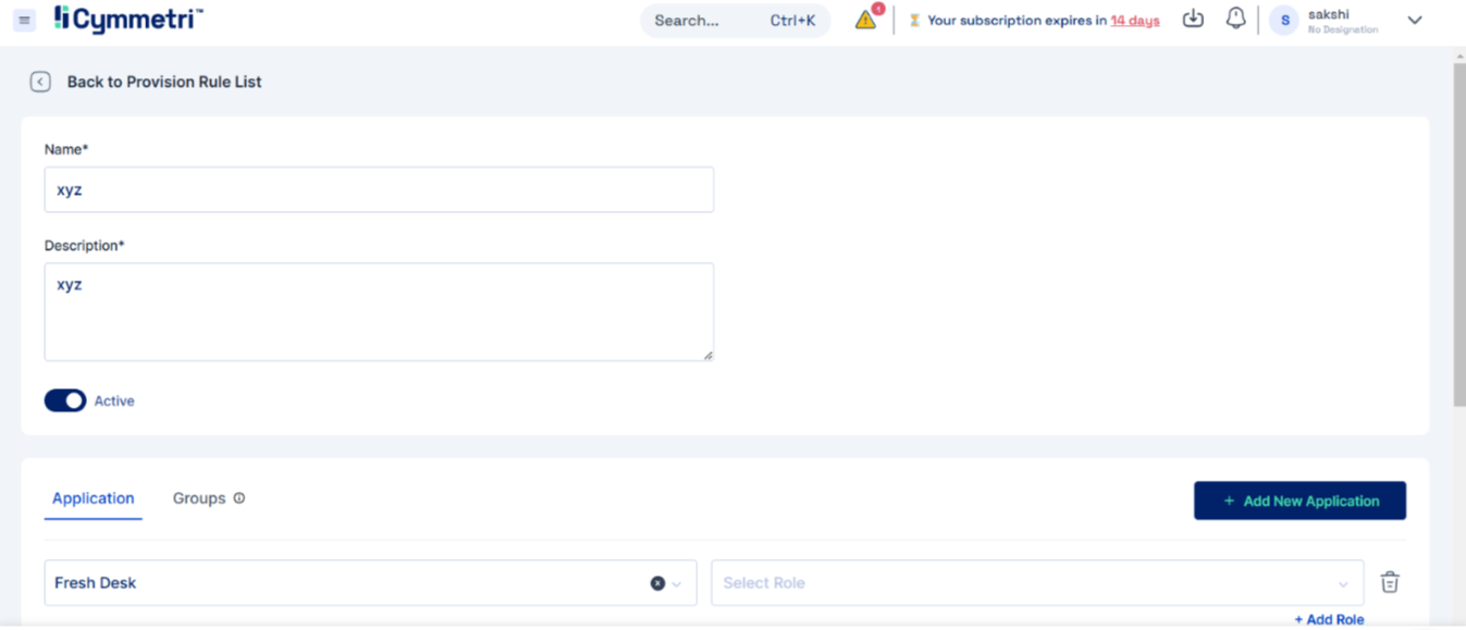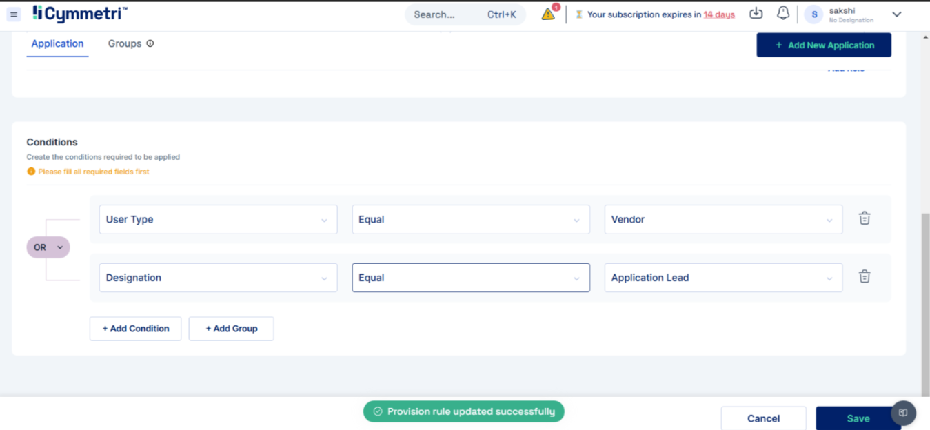 When creating a provision rule: