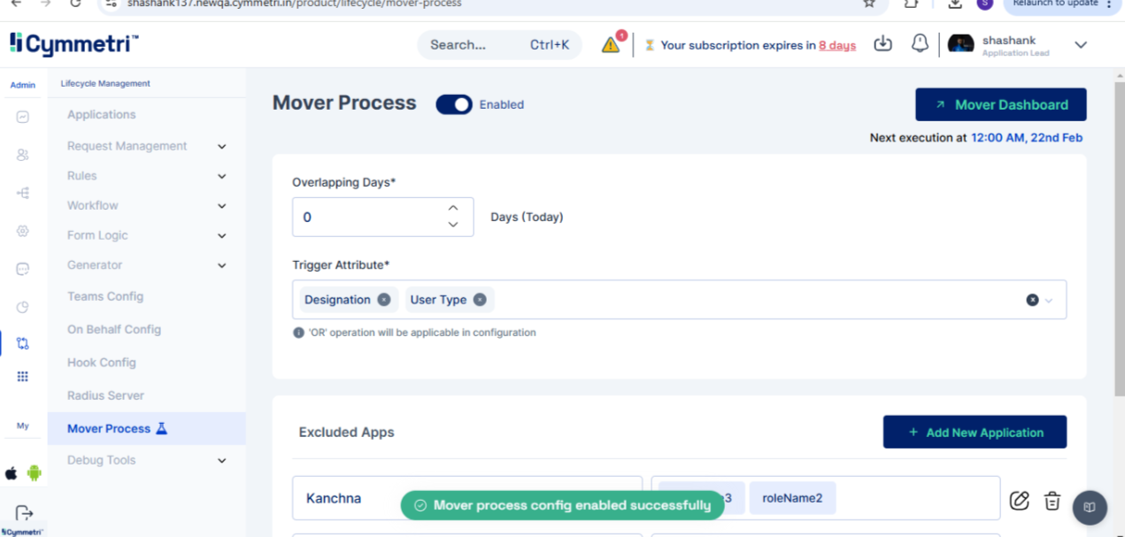 The Mover Dashboard is a central interface in Lifecycle Management that offers a comprehensive view of user transitions and access changes governed by Mover rules. It assists administrators in monitoring, configuring, and verifying the mover process.