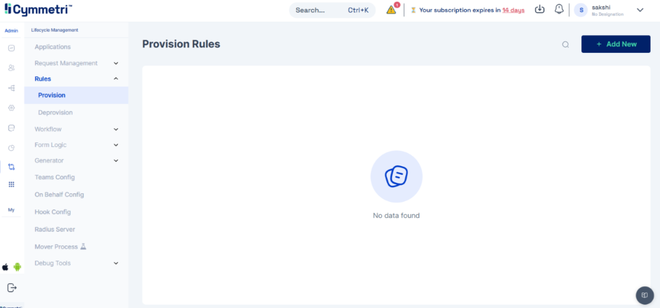 Once Mover is enabled and configured, add provision rules. Click on "Add New" to begin the configuration process for a new rule.