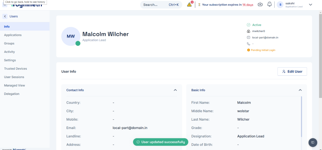 To verify if Mover is triggered according to the provision rule, update the Identity Hub user: