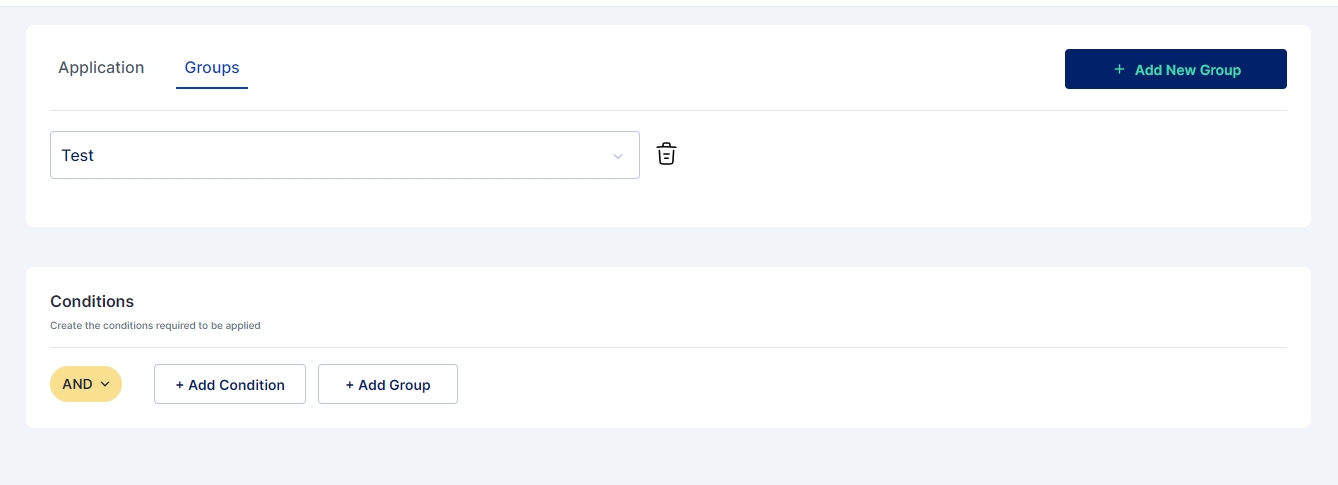 For assigning groups the administrator needs to go to the Groups Tab and click on +Add New Group button.
