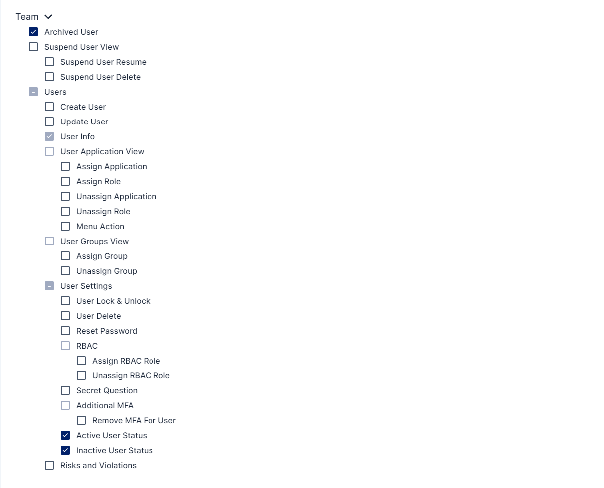 * **Remove MFA For User:** Permits the manager to remove MFA for team members.