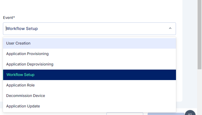 Workflow Setup: This type of workflow is triggered on the creation, updating, or deletion of mapped workflow configurations and their associated rules. It ensures that any changes to the workflow setup are reviewed and approved, maintaining the integrity and effectiveness of the workflow processes.