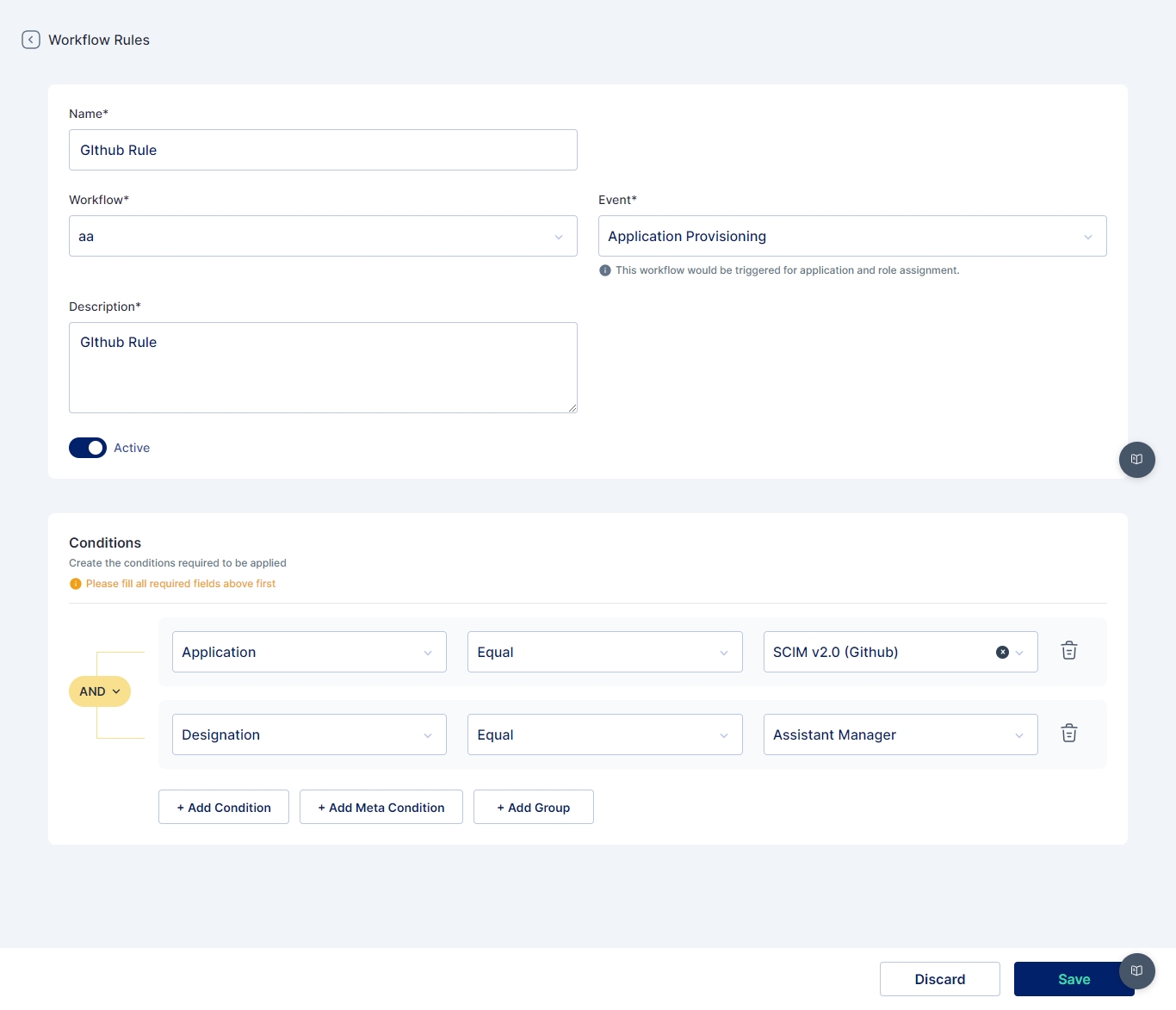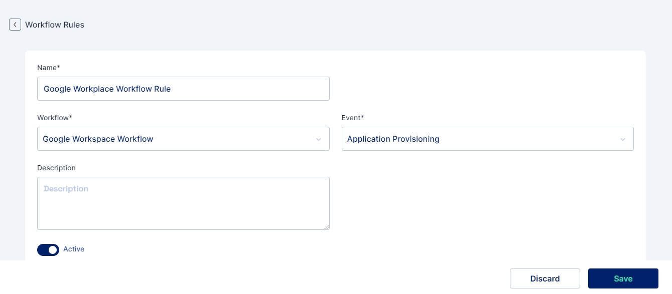 Workflow: (Mandatory) Need to select the custom workflow for which the rule will be applicable