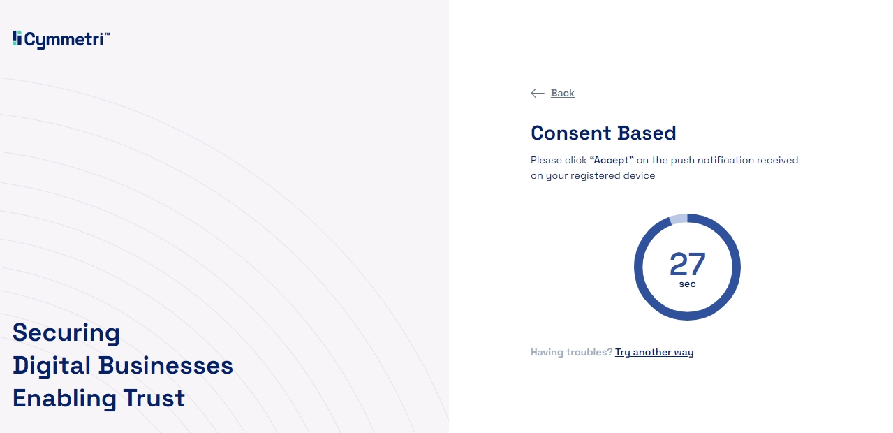 Option 3 - Choosing the Consent Based Passwordless Login mechanism will send a push notification to the user's mobile phone and the user may click on the accept button to complete the login process.