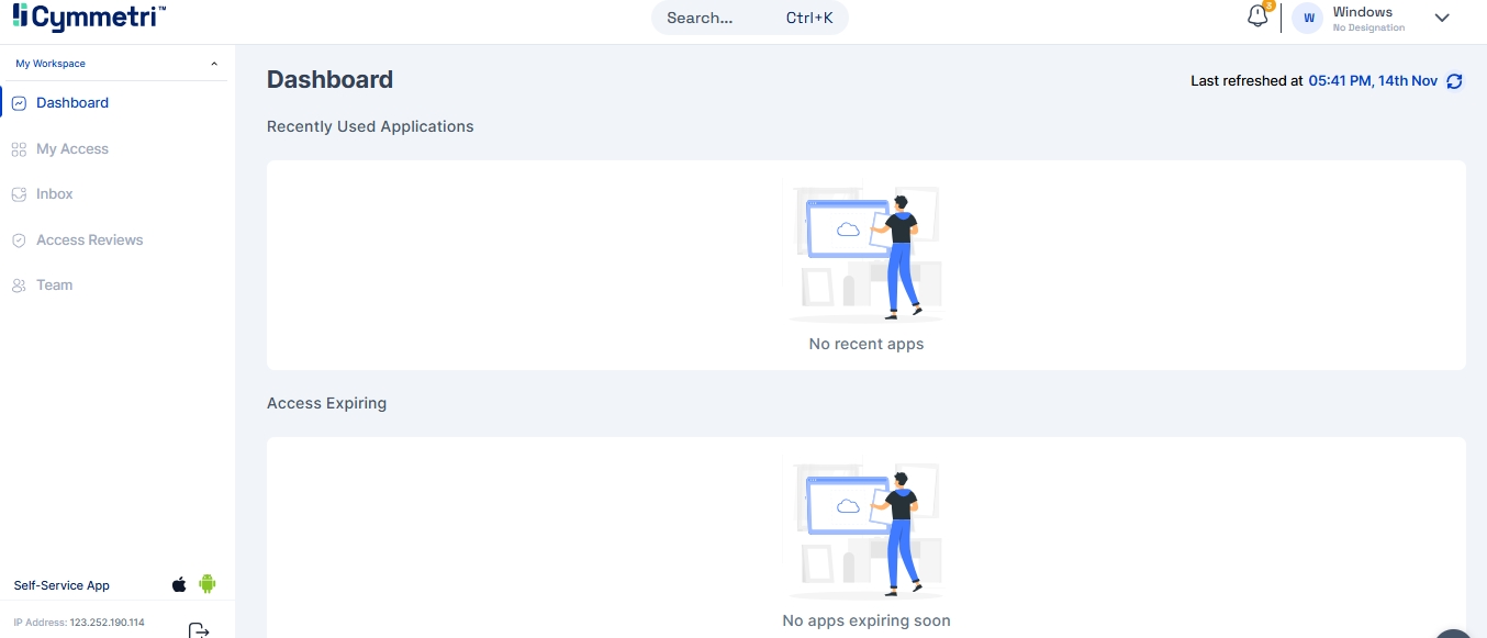 Regardless of the passwordless mechanism chosen to login , the user will end up on the dashboard page below upon successful login.