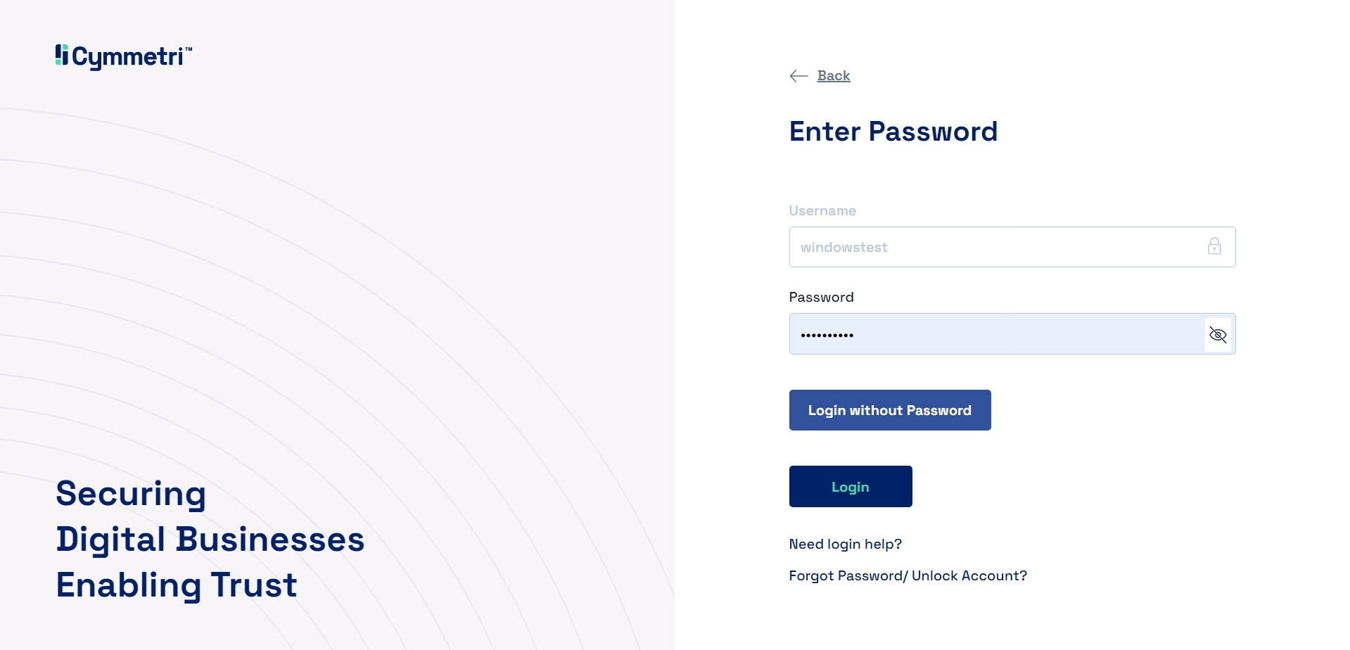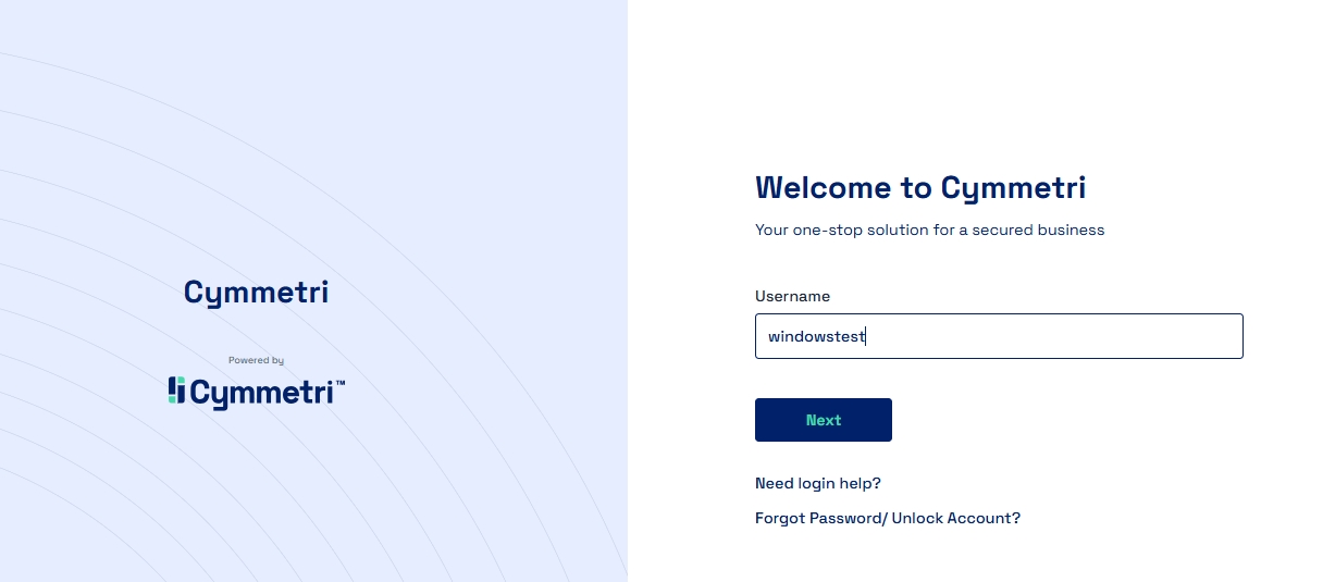 Once, on the Cymmetri Login page, the user needs to enter their username, users receive their login credentials on their corporate email as shown below: