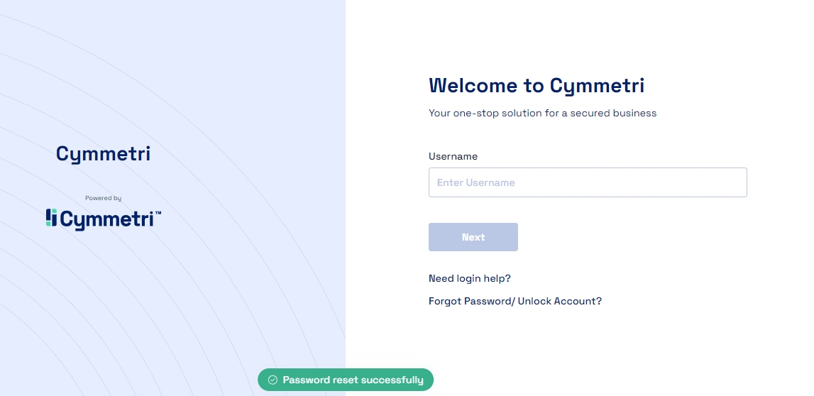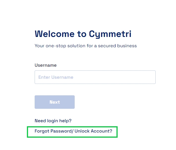 Cymmetri user may need assistance to Unlock Account in case their ID is locked for access. In the case where user has forgot the password, the user can self reset to gain access to Cymmetri Cloud.