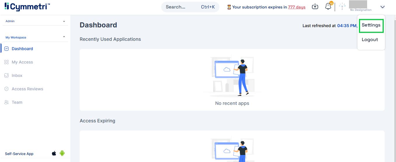 Cymmetri allows all users to be able to perform self-service actions such as Single Sign-On, Password Reset, MFA Reset, Approve Access request for other users, Re-certification approvals, and Team Configurations among others.  \