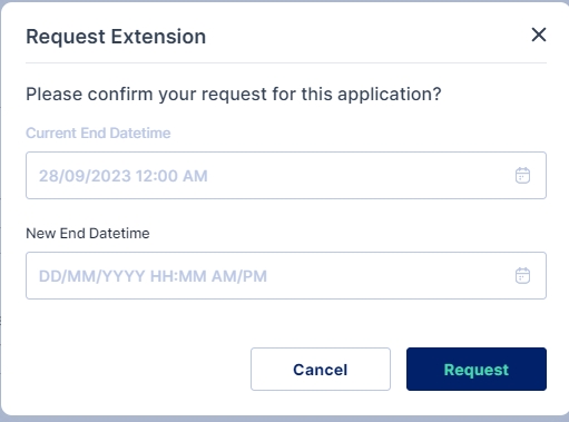 Cymmetri allows user to extend their access period for applications with time-bound access.