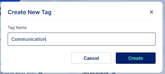 To add a tag, click on Create New Tag button. Provide the desired name and click on Create button.