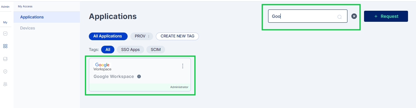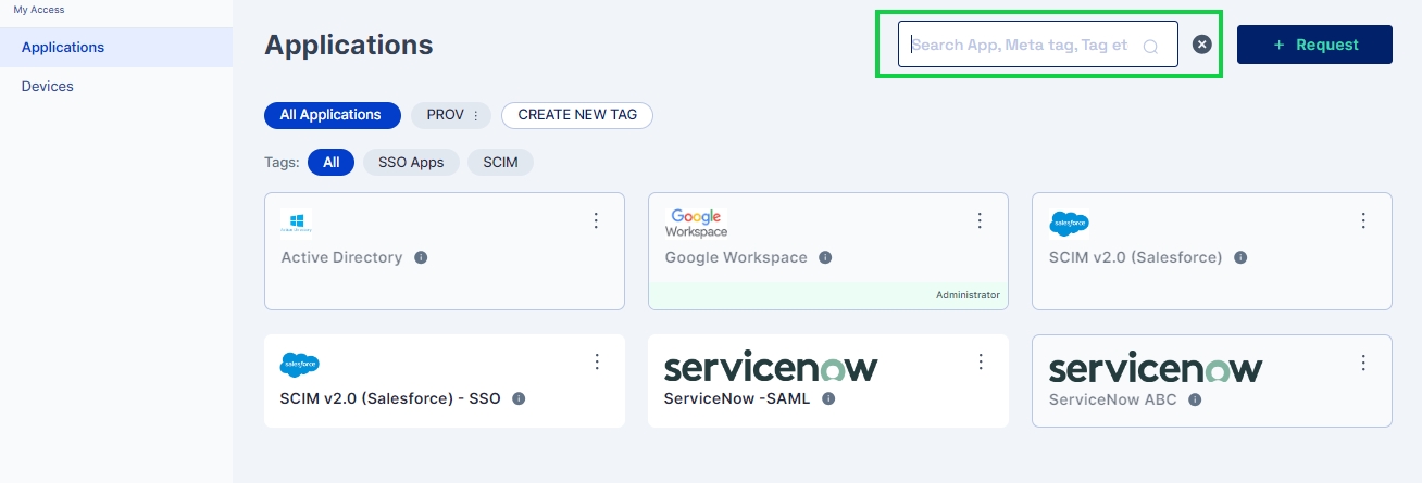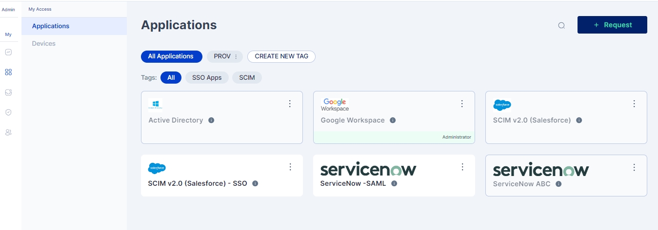 The Application section under My Access provides user easy and friction-less access to the applications they want to use.