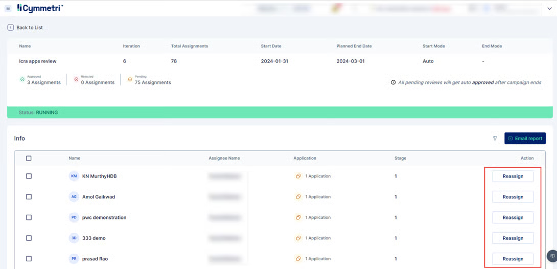2. Campaign Managers can also reassign a review task to another user, such as a manager or supervisor. This functionality is crucial in situations where the originally assigned reviewer is unavailable due to unforeseen circumstances, ensuring continuity and flexibility in the review process.