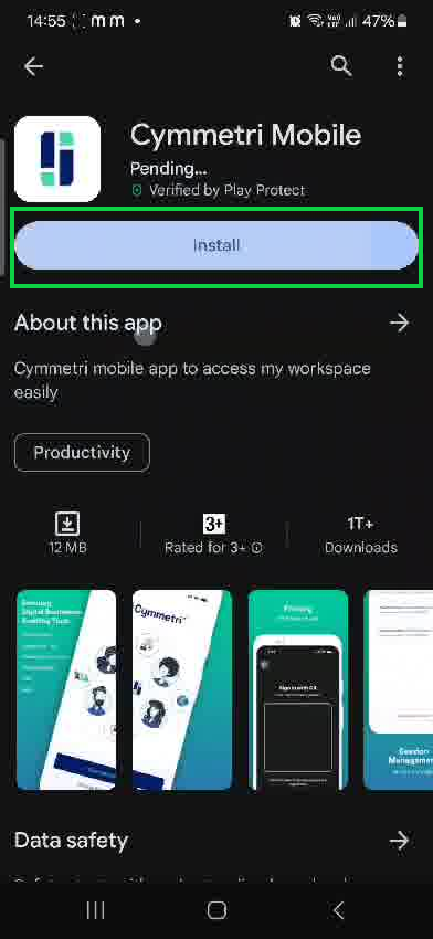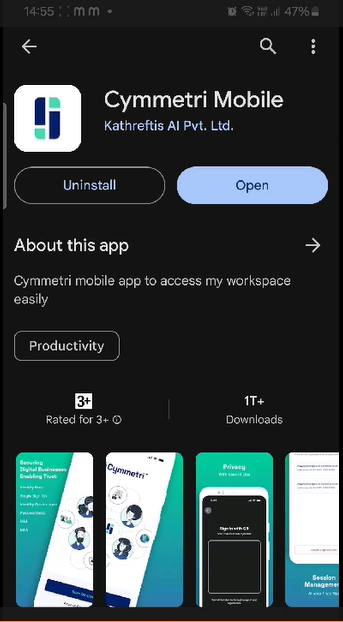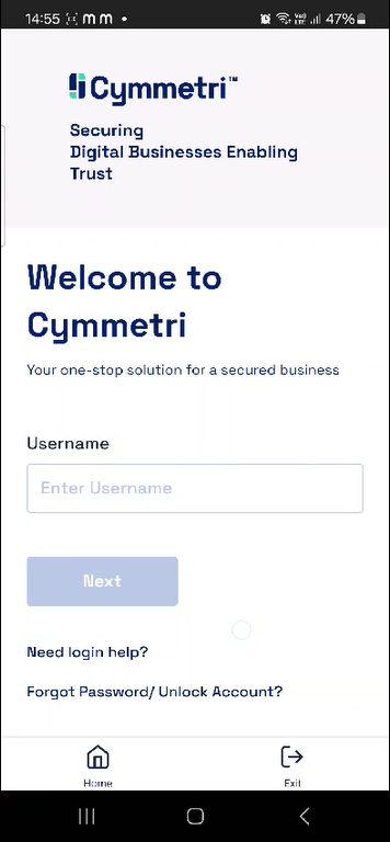 Head to your device's app store – either the Apple App Store for iOS devices or the Google Play Store for Android and Download the Cymmetri Mobile App.