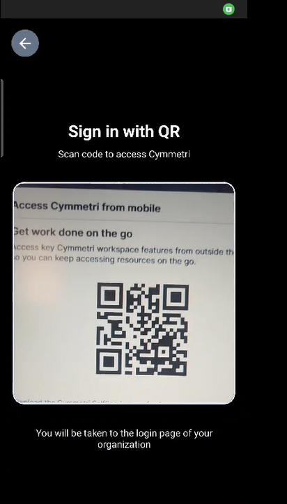 Once the QR code is scanned and validated, the login page of the corresponding tenant is opened which can be used by the user to login into Cymmetri using their credentials.