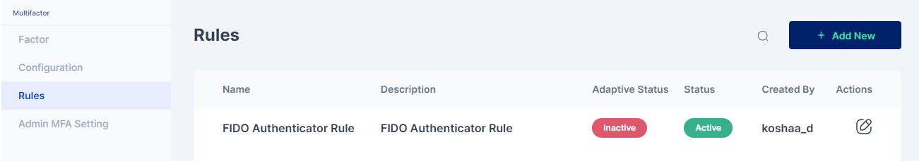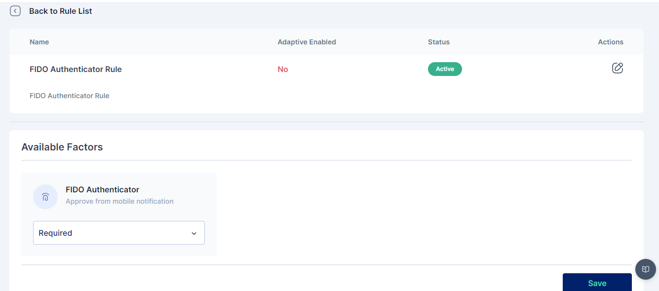 Once you have either created a new rule or edited an existing one, change the dropdown of the FIDO Authenticator factor to indicate that it is mandatory (required).