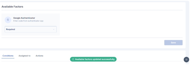 Once you have either created a new rule or edited an existing one, change the dropdown of the Google Authenticator factor to indicate that it is mandatory (required).