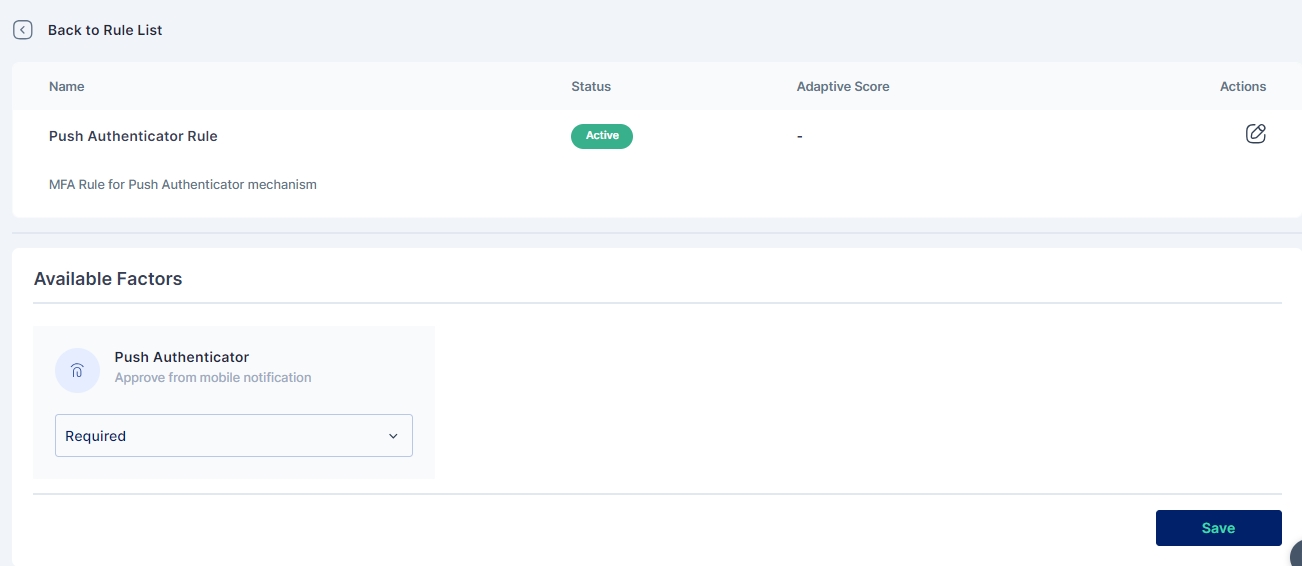 Once added you need to configure the rule to select the Push Authenticator mechanism as Required and enable it.