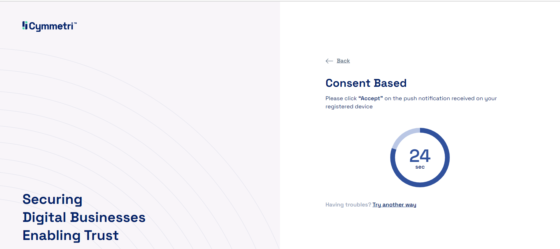 If it has been enabled in the passwordless configuration, the user will be displayed consent based authentication on passwordless login attempt, where the user will be asked for approval.