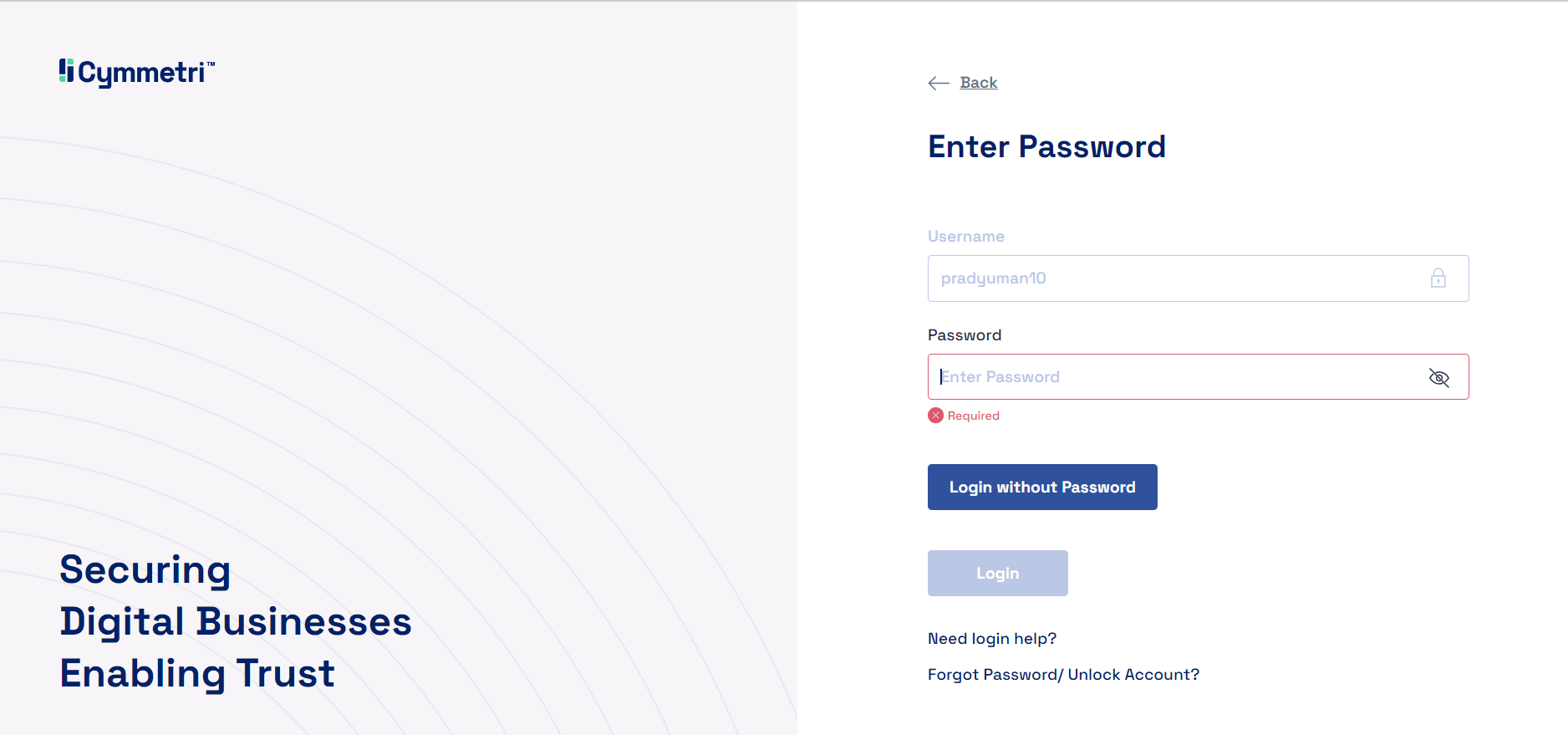 The user clicks on "Login without password" to proceed with Passwordless authentication.&#x20;