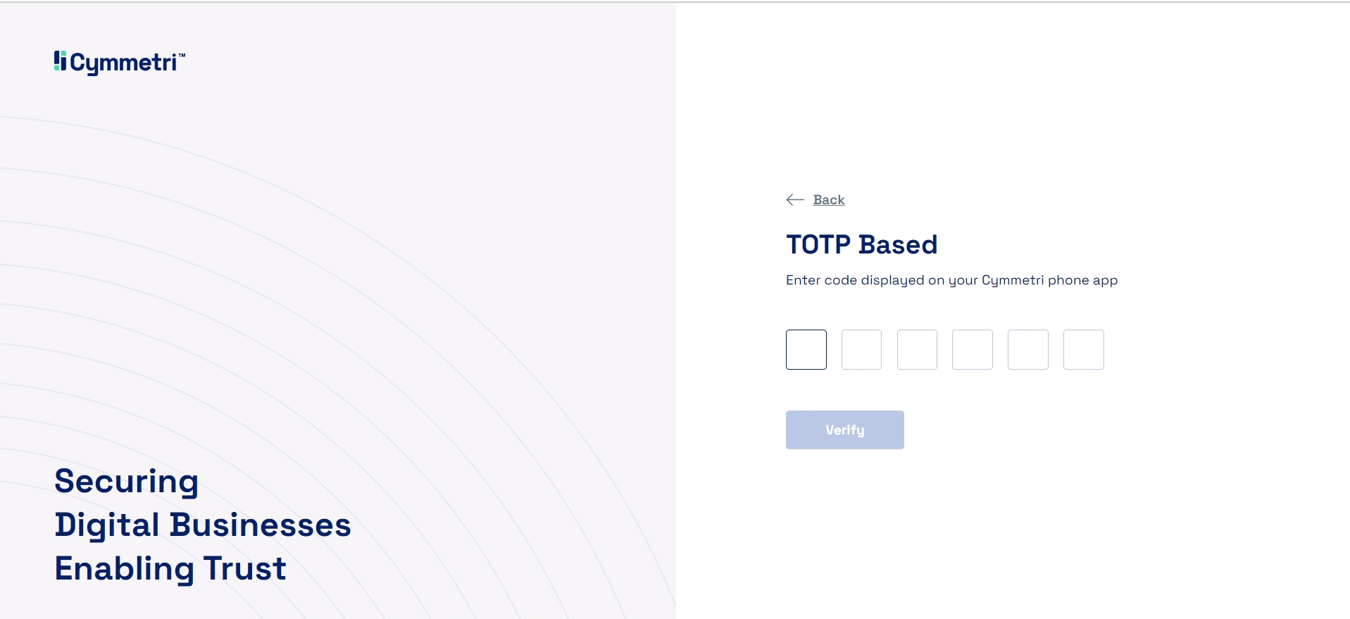 A TOTP for the user has been configured on the users Cymmetri mobile application. The user inputs the totp and is logged in into the system