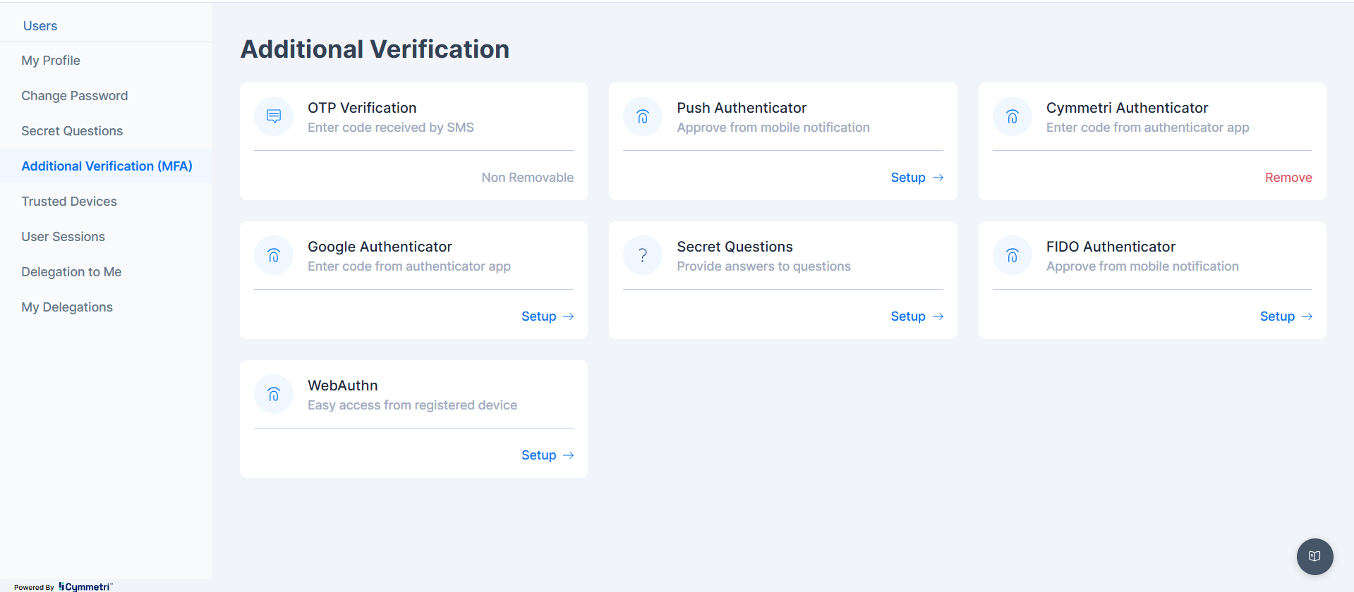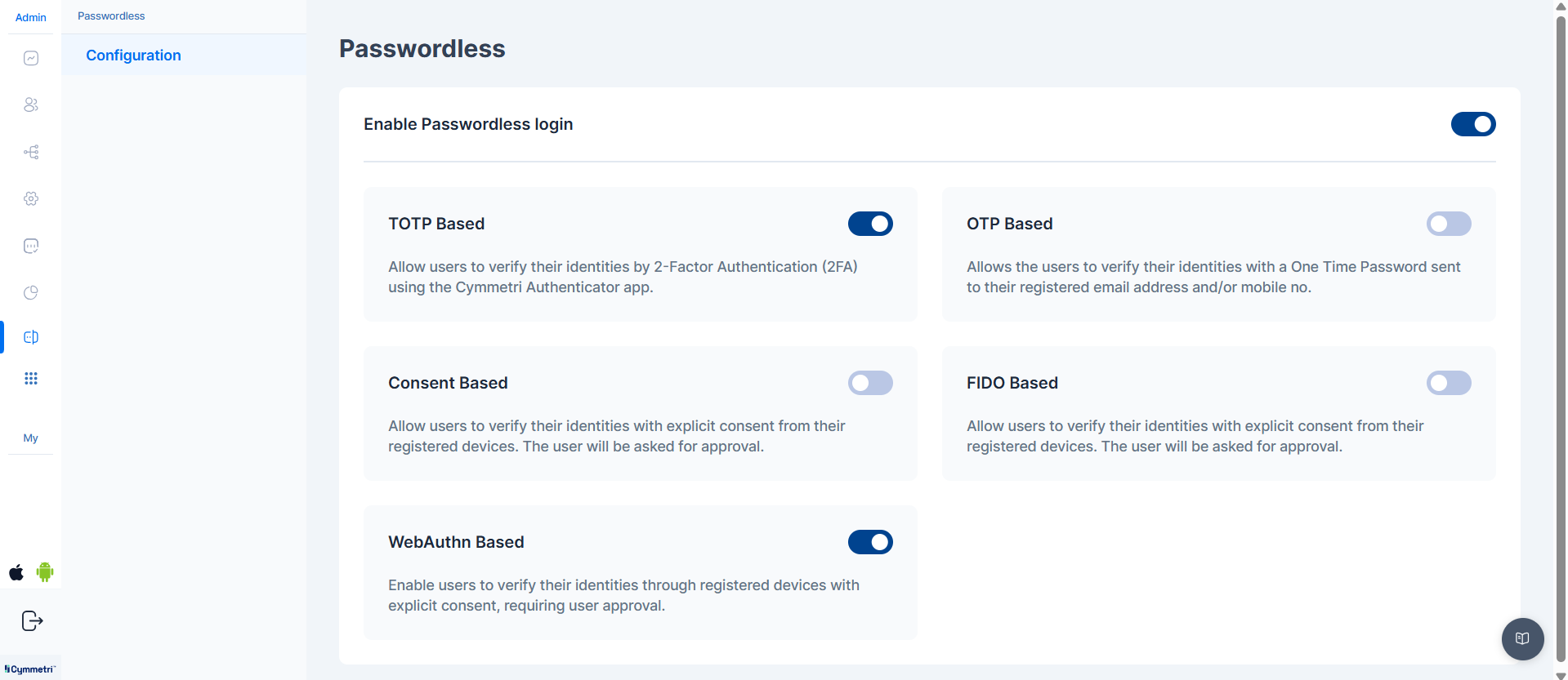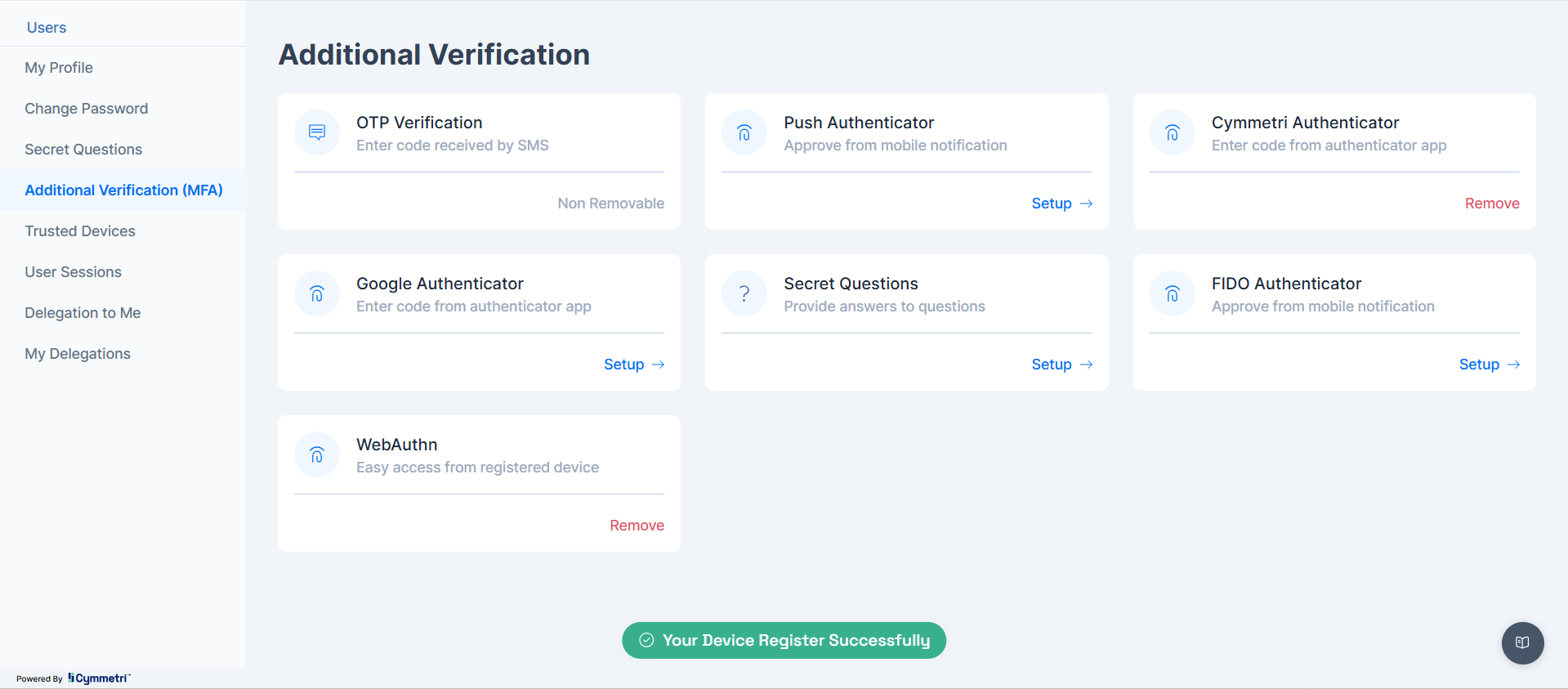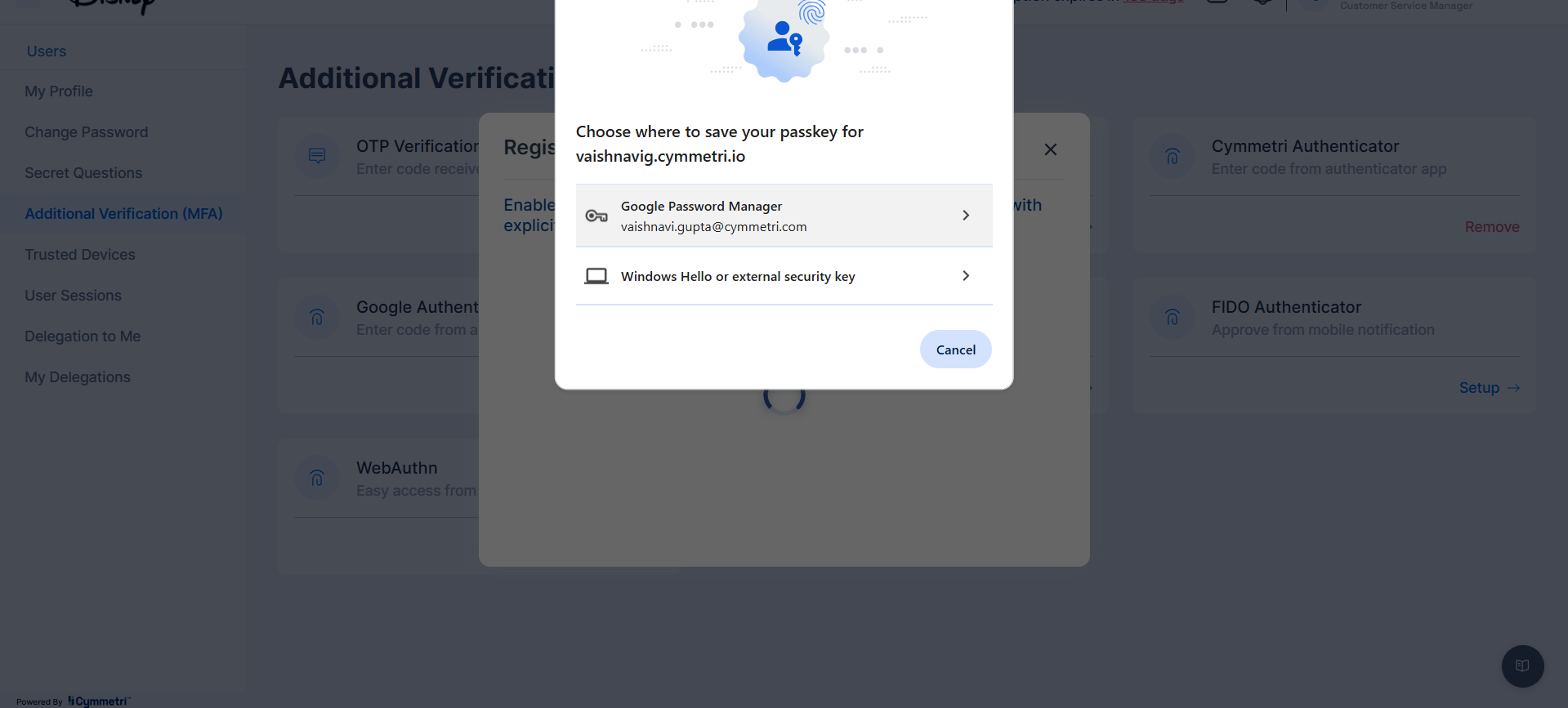* This registration process would be facilitated through Cymmetri's user portal, securely linking the public key of the authenticator to the user's identity within Cymmetri.