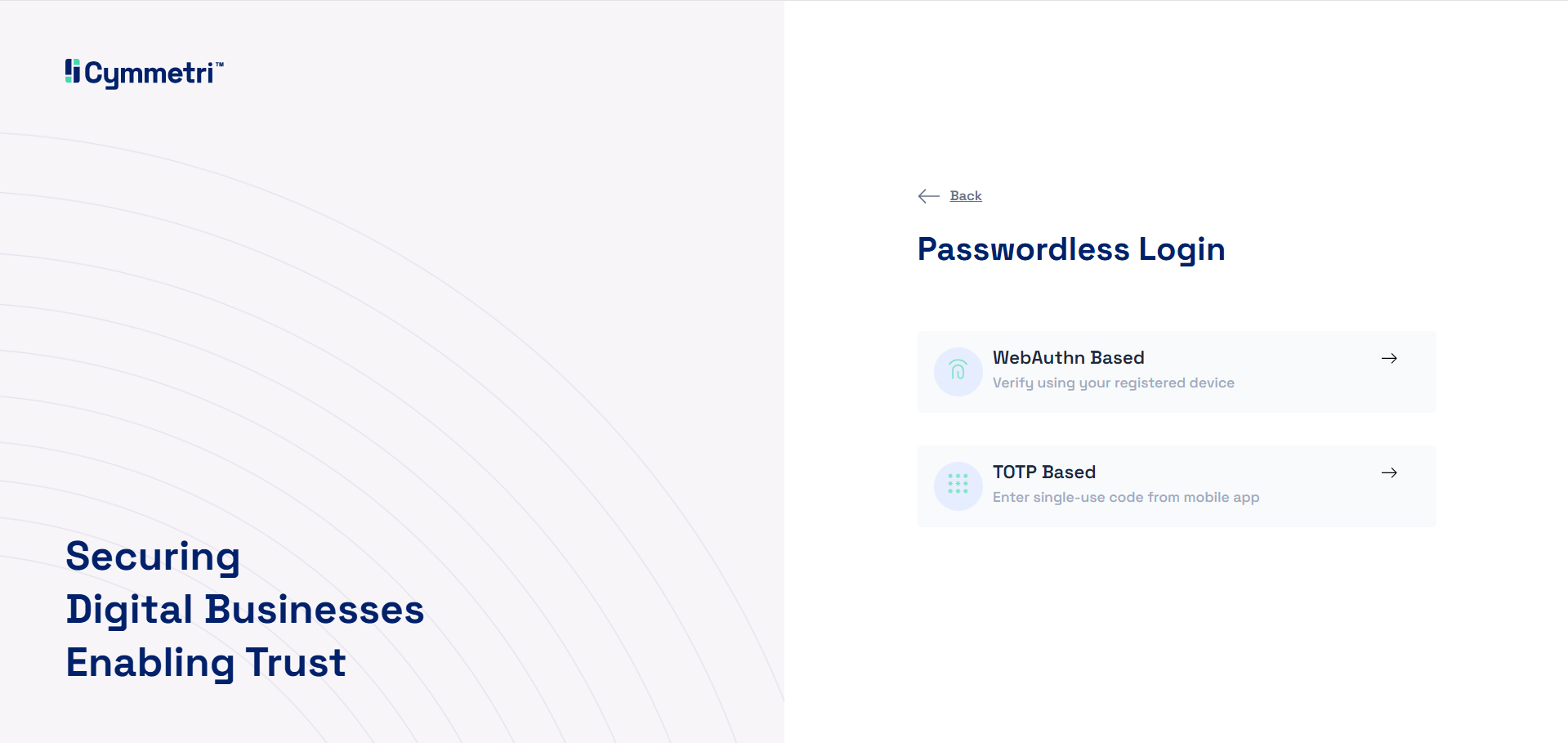 * When a user attempts to log in (e.g., `mycompany.cymmetri.com/tenantA`), Cymmetri's login page would initiate a WebAuthn challenge.