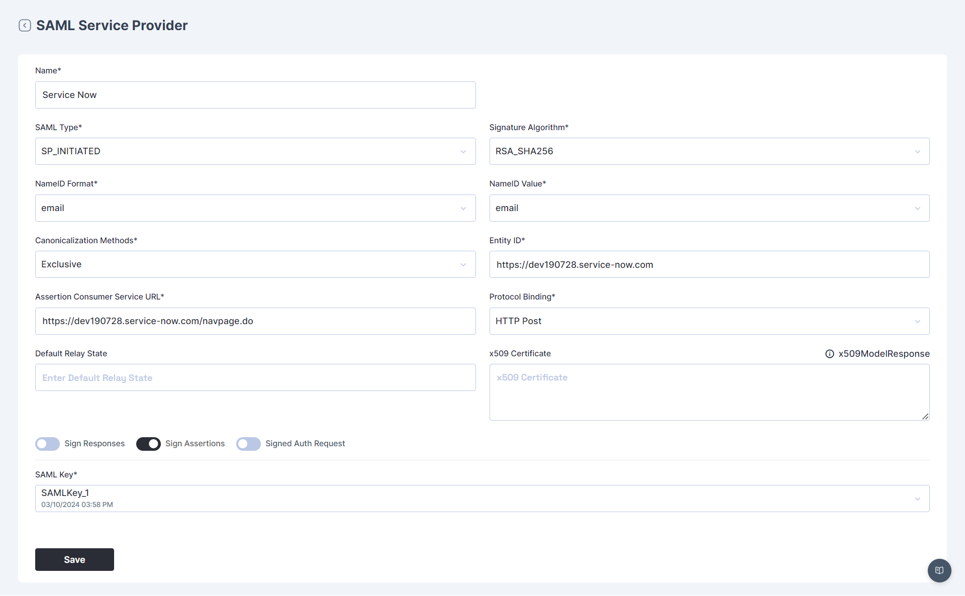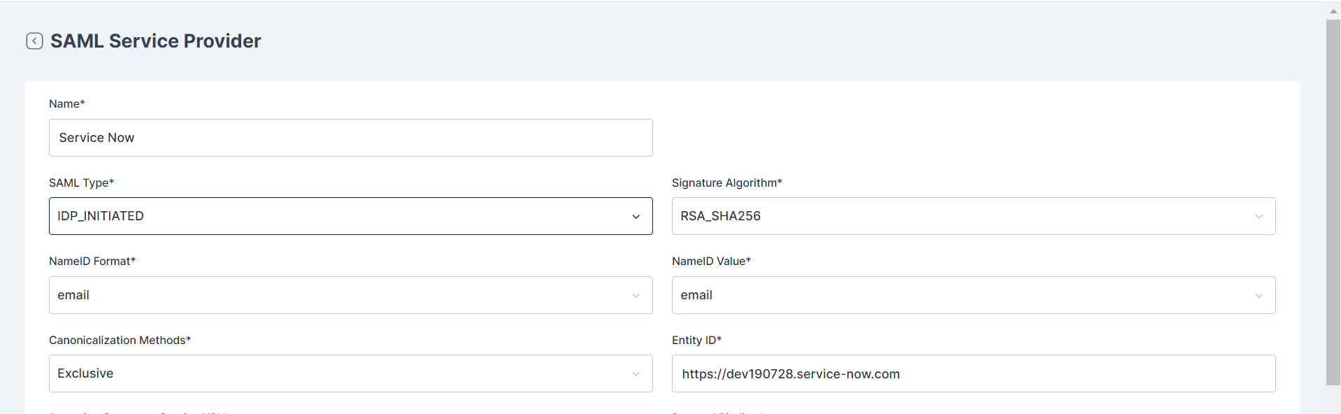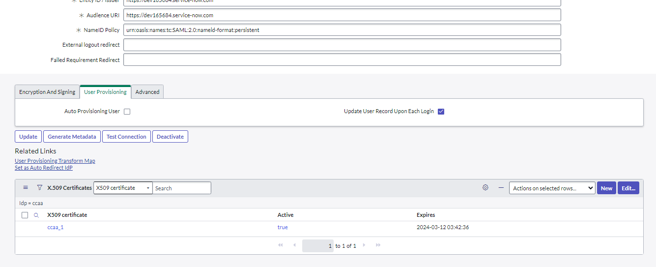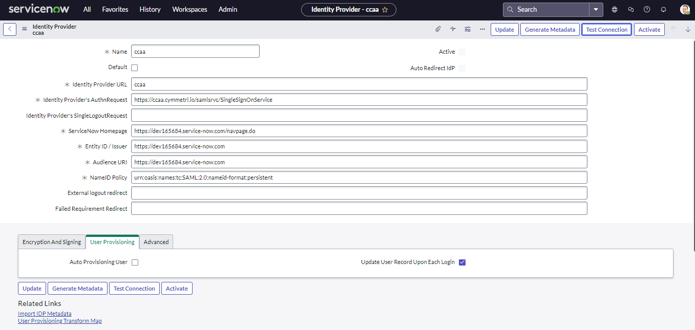 Let us return back to Service Now application for completing the configuration on the Service provider side.