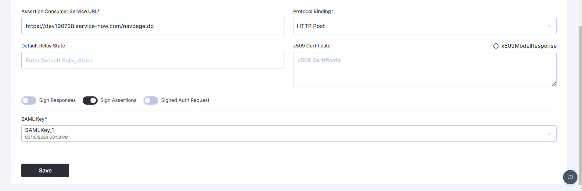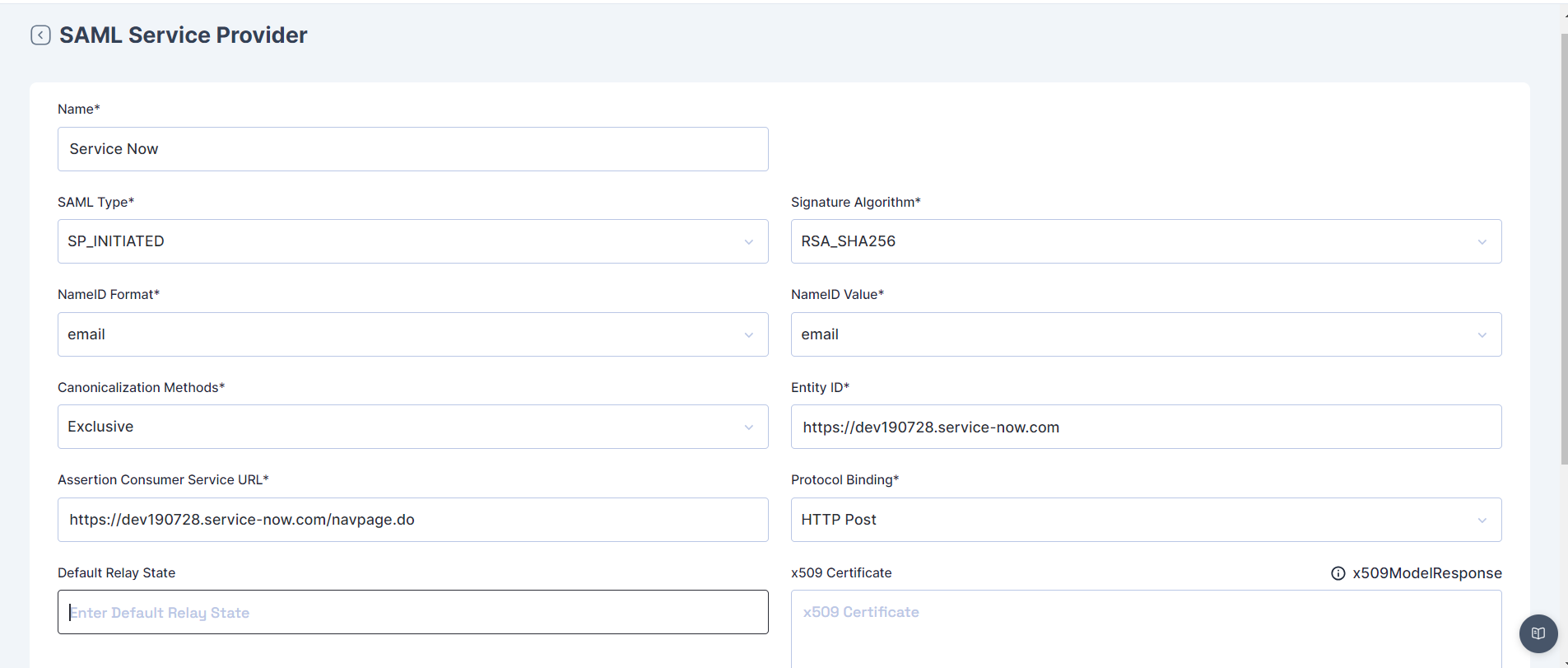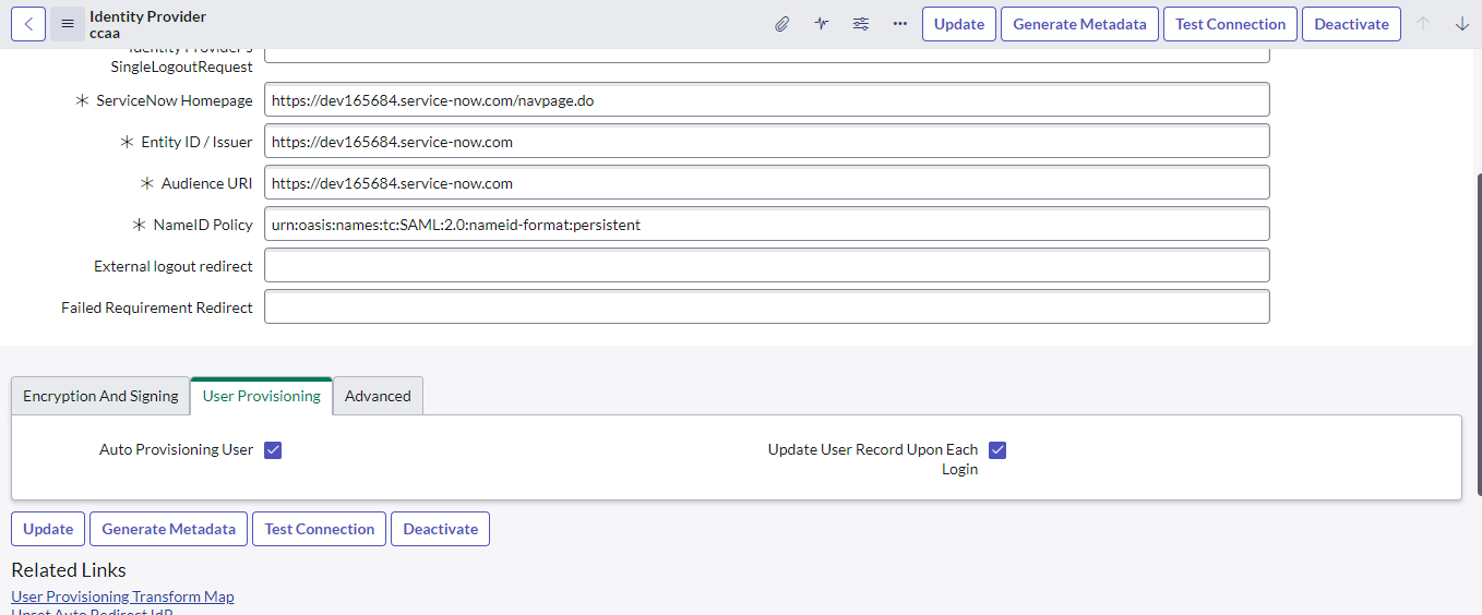 Let us return back to Service Now application for completing the configuration on the Service provider side.