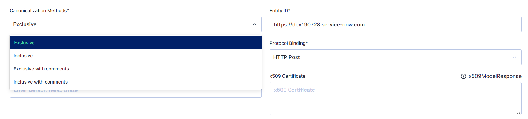 Let us select “Exclusive” as the Canonicalization Method. Reasons may be explained here in the SAML reference document.