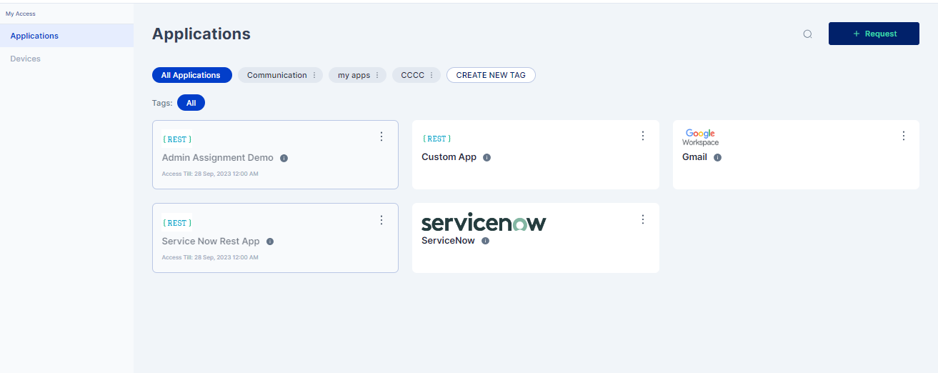 Once it is enabled we can come to the currently logged in user's My Workspace-> My Access page and click on the Service Now application tile