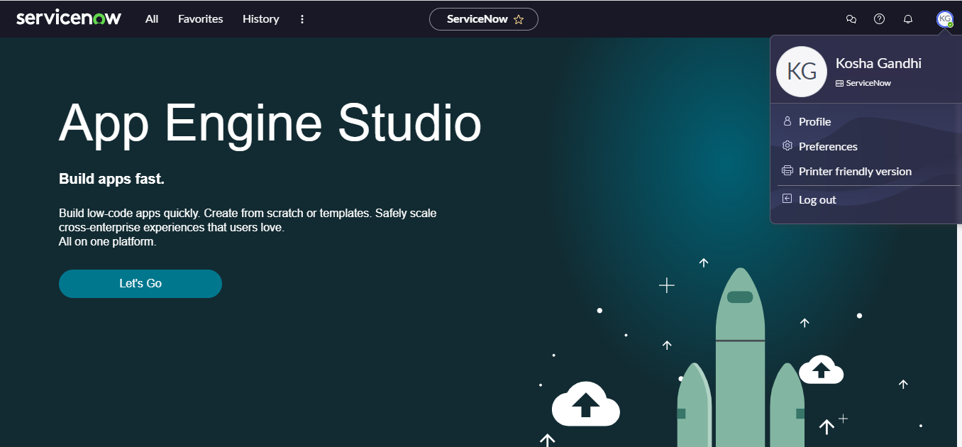 We will now be redirected to the ServiceNow home page using the logged in users crendentials as shown below: