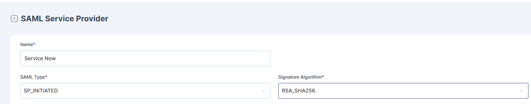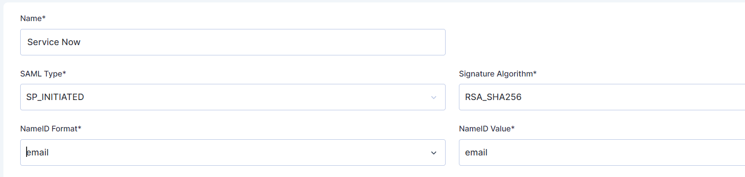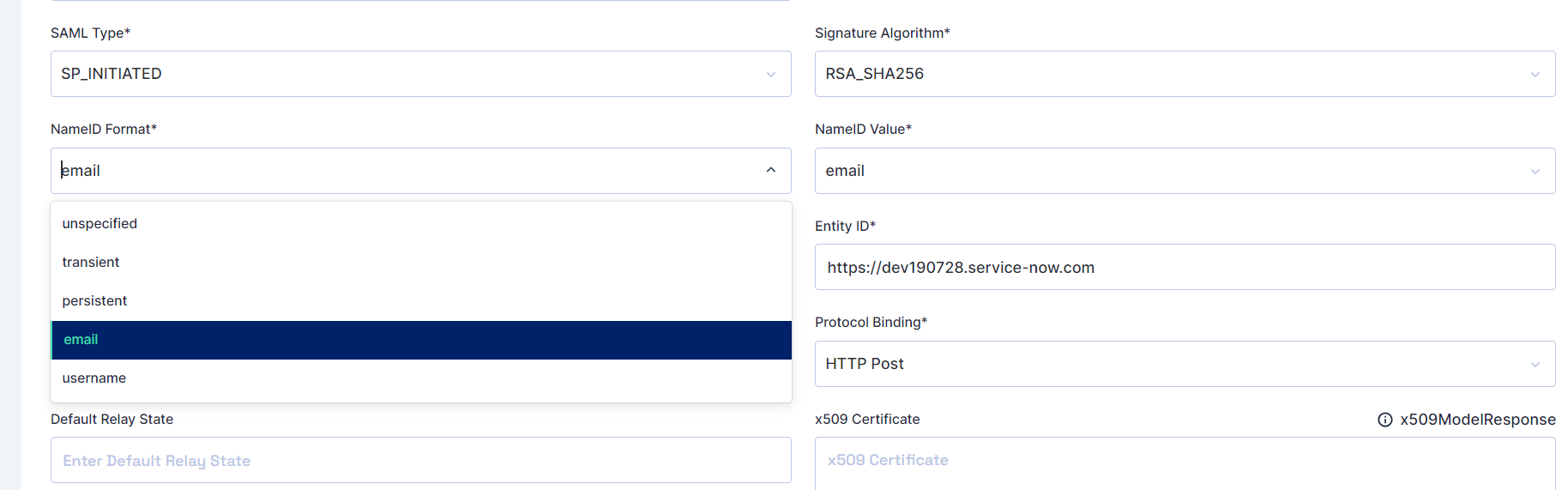 SAML Type - We select the “SP_INITIATED” from the dropdown.