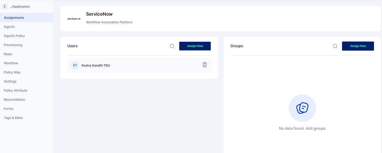 Now that both sides are configured, let us test the flow by assigning the application to the current user.
